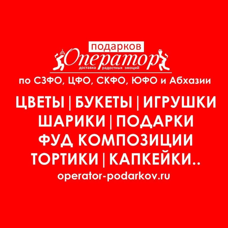 доставка: ЦВЕТЫ, букеты, ТОРТЫ, клубника в шоколаде, ФУД-товары, БЕНТО, шарики и т.д., по СЗФО, ЦФО, СКФО, ЮФО и Абхазия