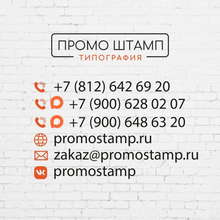 +7 (812) 642 69 20 +7 (900) 628 02 07 +7 (900) 648 63 20 www.promostamp.ru zakaz@promostamp.ru