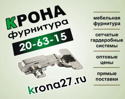 Мебельная фурнитура, кромочная лента, наполнение для кухонь и механизмы. эл.почта: krona27@ya.ru *** Заказы на сайте: https://krona27.ru принимаем 24/7 и обрабатываем в ближайшее рабочее время ***